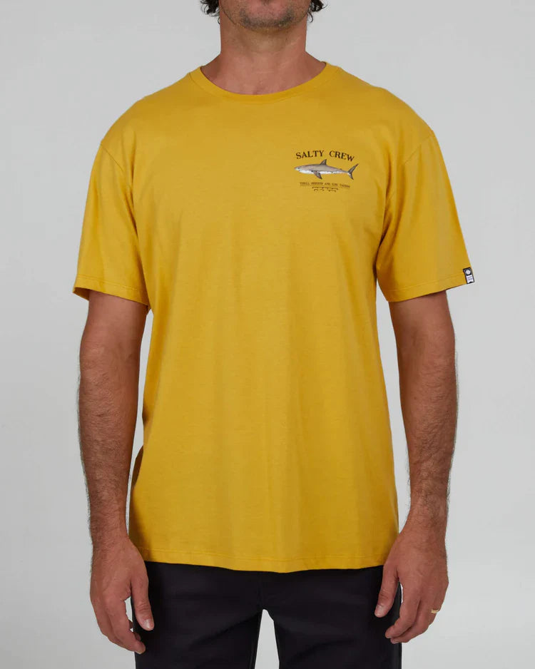 La Salty Crew Bruce Premium S/S Tee en color mostaza combina comodidad y estilo náutico en una camiseta ligera y versátil. Confeccionada en 100 % algodón ringspun de 30 singles, ofrece un tacto suave y agradable, perfecto para un uso prolongado durante tus actividades al aire libre o en la ciudad.