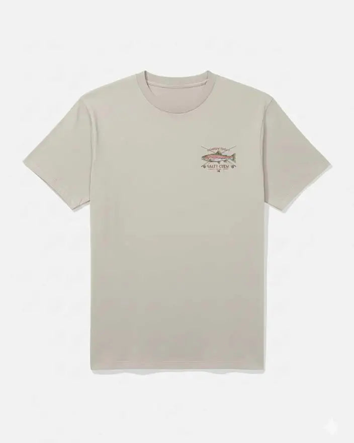 La Salty Crew Trout Mount S/S Tee en color crema combina comodidad y estilo náutico en una camiseta ligera y versátil. Confeccionada en 100 % algodón ringspun de 30 singles, ofrece un tacto suave y agradable, perfecto para un uso prolongado durante tus actividades al aire libre o en la ciudad.