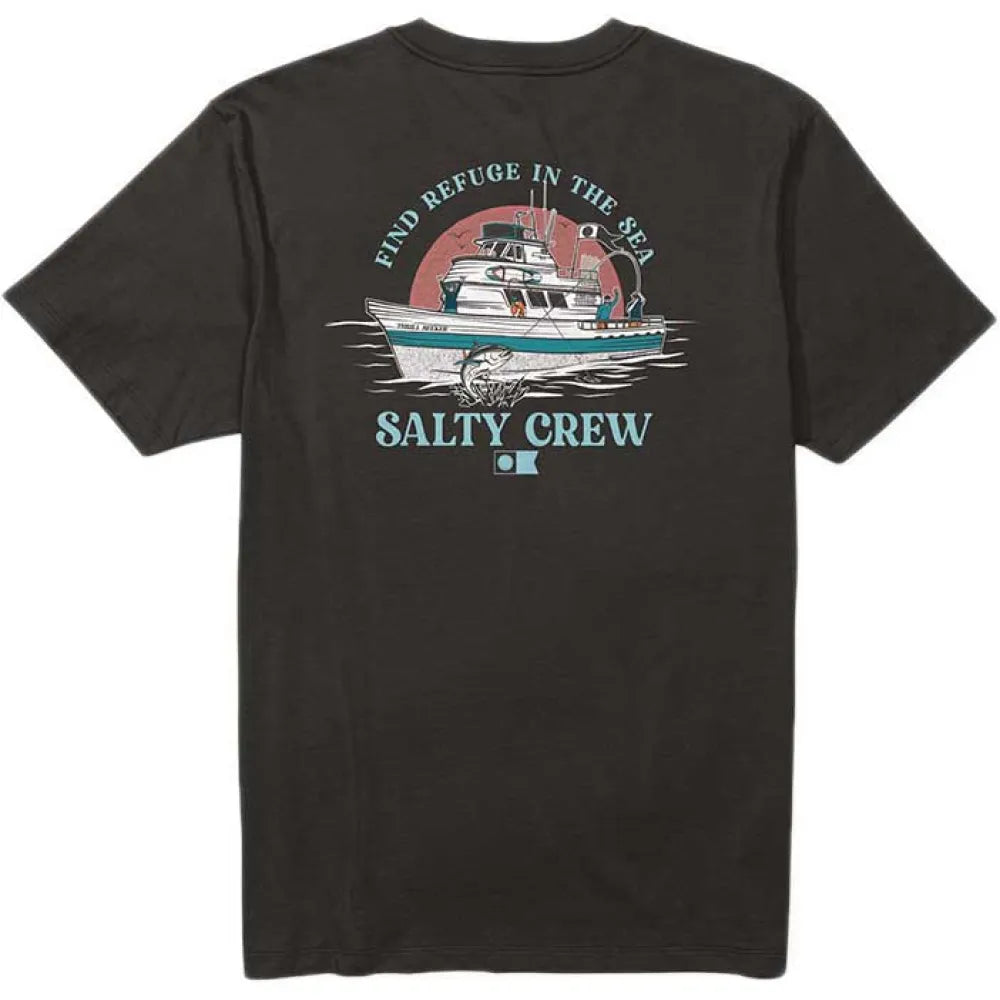 La Salty Crew Day Charter S/S Tee en color negro combina comodidad y estilo náutico en una camiseta ligera y versátil. Confeccionada en 100 % algodón ringspun de 30 singles, ofrece un tacto suave y agradable, perfecto para un uso prolongado durante tus actividades al aire libre o en la ciudad.